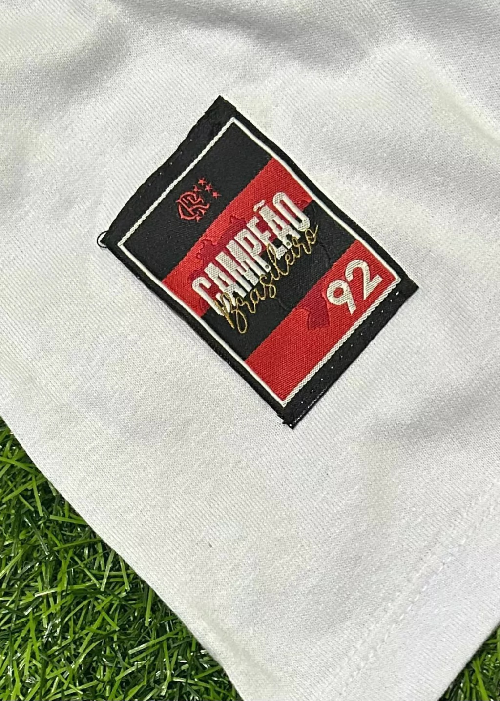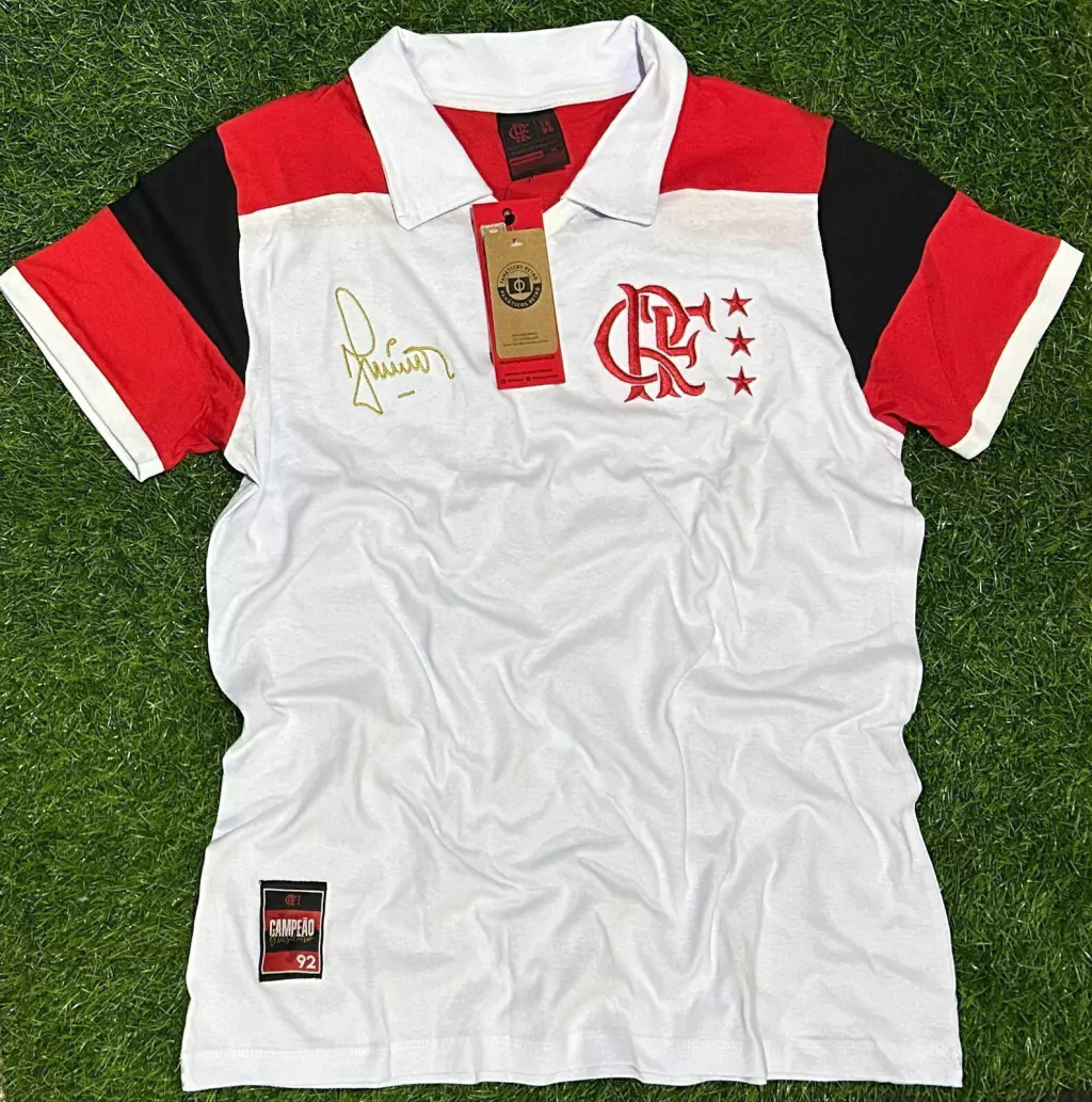 Em 1992 o Pentacampeonato Brasileiro chegou! Em campo, o craque Junior comandava o Mengão para mais uma conquista! Manto retrô oficial do Flamengo de 1992 autografada pelo ídolo Junior. Confeccionada em algodão, a camisa possui o CRF e autógrafo bordados, além do número 5 silkado e o patch de Campeão Brasileiro de 92 costurado.