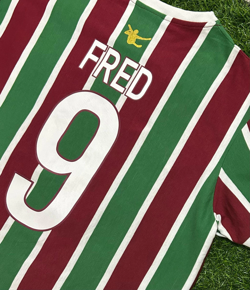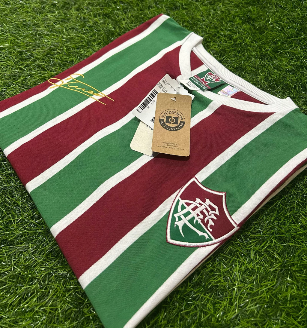 Reviva a história do Fluminense com a camisa retrô do ídolo Fred. Confeccionada em algodão tricolor leve, a camisa possui o escudo e o autógrafo do ídolo bordados na frente da camisa, além do nome do craque em silk e número 9 bordado nas costas.