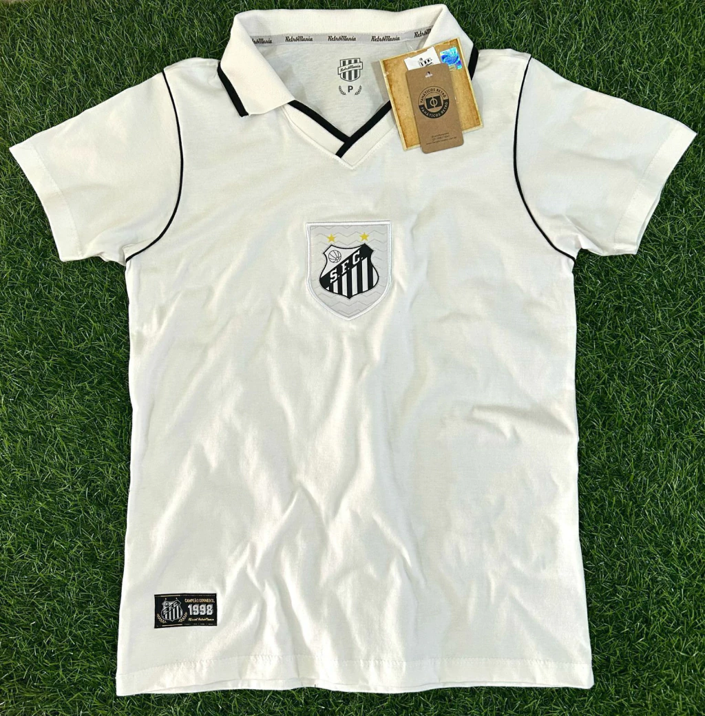 Reviva a história do Santos com a retrô oficial de 1998 em homenagem ao Título da Copa Conmebol. Camisa confeccionada em algodão branco leve, possui o escudo da época bordado ao centro, gola polo com detalhes alvinegros e o patch da conquista.